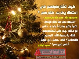 وكذلك يحرم على المسلمين التشبه بالكفار بإقامة الحفلات بهذه المناسبة ، أو تبادل الهدايا أو توزيع الحلوى ، أو أطباق الطعام ،أو تعطيل الأعمال ونحو ذلك لقول النبي صلى الله عليه وسلم : { من تشبّه بقوم فهو منهم } . قال شيخ الإسلام ابن تيميه في كتابه : ( اقتضاء الصراط المستقيم مخالفة أصحاب الجحيم ) : " مشابهتهم في بعض أعيادهم توجب سرور قلوبهم بما هم عليه من الباطل ، وربما أطمعهم ذلك في انتهاز الفرص واستذلال الضعفاء " . انتهي كلامه يرحمه الله .
